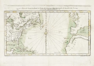 Jacques Nicolas BELLIN – François-Julien DESBRULINS, Carte de l'Ocean Occidental et Partie de l'Amerique Septentrionale Dressée pour l'intelligence du Journal du Voyage. — Que le R. P. Charlexoix de la Compagnie de Jesus a fait en 1720, à la...