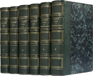 COMTE (Auguste). Cours de philosophie positive. Paris, Bachelier, 1830-1842. 6 volumes in-8, demi-chagrin vert, dos orné de caissons dorés, tranches mouchetées (Reliure de l'époque).