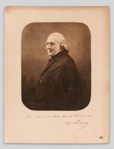 NADAR (Félix) (1820 1910) Portrait de Charles Philipon à mis-corps, de trois-quarts à gauche, 1856. Photographie originale, tirage albuminé d’époque contrecollé sur un carton avec le timbre sec à l’adresse 135 rue St Lazare. Précieuse épreuve avec envoi signé à la plume. Dim. : Im. : 235 x 188 m m ; Sup. : 367 x 282 m m.