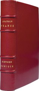 FRANCE (Anatole). Histoire comique. Paris, Calmann-Lévy, s.d. [1903]. In-12, maroquin rouge janséniste, coiffes guillochées, filets sur les coupes, tranches dorées sur témoins, doublures du même maroquin encadrées d'un filet doré, gardes de...