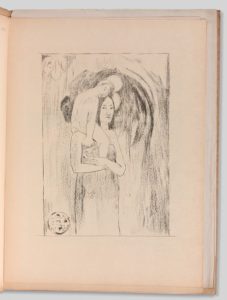 EPREUVE (L’). Album d’art. Directeur : Maurice DUMONT. P., 1894-95. Revue mensuelle artistique et littéraire constituée de 12 numéros (du n° 1 de décembre 1894 au n° 11/12 de novembre 1895), 12 livraisons in-folio, en ff., sous 10 couv. impr. COLLECTION COMPLETE, DE LA PLUS GRANDE RARETE, tirée seulement à 215 exemplaires numérotés (sauf les quatre dernières livraisons, tirées à 120). Citons parmi les collaborateurs littéraires : Paul Verlaine, Henri de Régnier, Paul Fort, Rémy de Gourmont, Huysmans La collection contient 120 estampes originales, hors-texte, exécutées par soixante artistes symbolistes et d’avant-garde dont deux lithographies de Paul Gauguin, Maurice Denis, Pierre Bonnard, Fantin-Latour, Aristide Maillol, Edouard Vuillard et de nombreuses eaux-fortes par Béjot, Guérard, Rops