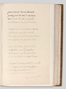 GAUTIER (Théophile). La Comédie de la mort. P., Desessart, 1838. In-8, maroq. havane, double encadr. de filets à froid sur les plats, dos à nerfs avec décor id., dent. intér., tête dor. , non rogné, couv. cons. (Gayler-Hirou). EDITION ORIGINALE de cette oeuvre importante de Th. Gautier, ornée d’un beau frontispice de Louis Boulanger, gravé sur bois. UN DES TRES RARES EXEMPLAIRES IMPRIMES SUR GRAND PAPIER VELIN, avec le frontispice tiré sur Chine, auquel on a joint le manuscrit autographe, signé par Th. Gautier, de la pièce Pastel (relié face à la version imprimée, p. 119). Elégante reliure de Gayler-Hirou, relieur habituel de Barbey d’Aurevilly, exécutée vers 1875.