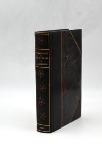 MAETERLINCK (Maurice). La Sagesse et la Destinée. Paris, Bibliothèque-Charpentier, 1898. In-12, Bradel demi-maroquin noir à coins, dos lisse finement orné d’un décor floral à froid et mosaïq., titre doré, filet doré sur les plats, non rogné., couv. cons. (Carayon). EDITION ORIGINALE. L’un des 30 exemplaires sur papier de Hollande numérotés, auquel on a joint une L.a.s. 25 avril 1913 à Huret en partie relative à l’ouvrage. TRES BEL EXEMPLAIRE, RELIE A L’EPOQUE PAR CARAYON.
