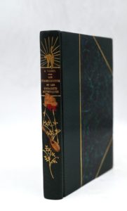 VALBEL (Horace). Les Chansonniers et les Cabarets artistiques. Dessins d’Alfred Le Petit. Préface de Clovis Hughes. P., Dentu, s. d., (vers 1895). In-12, Bradel demi-maroq. vert, dos orné et mosaïqué avec chat noir, masque et mandoline, coins, tête dor., nr, couv. ill. cons. (Ch. Meunier). UN DES TRES RARES EXEMPLAIRES SUR PAPIER DE CHINE, numéroté et signé par l’auteur. - Intéressant volume illustré sur les Cabarets et Chansonniers de la « Belle époque » : Les Indépendants - Le Chat Noir - Les 4 Z’Arts - Le Mirliton - Le Carillon - M. Boukay - Xanrof - X. Privas - Salis - P. Delmet - V. Hyspa - Botrel - M. Le-Gay - Bruant Très bel exemplaire, joliment relié à l’époque par Ch. Meunier. Provenance : - Bibliothèque Maurice Méric (ex-libris).