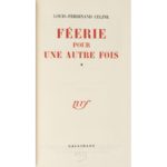 CÉLINE (Louis-Ferdinand). — Féérie pour une autre fois. — Paris, NRF, 1952. — In-12, cartonnage éditeur selon la maquette de Paul Bonet.