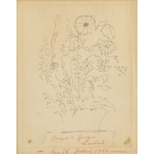 JOUHANDEAU Marcel — Bouquet de Jacques Louvière, 1964 — Dessin à l’encre sur vélin — Titré et daté au crayon gras rouge "le 18 juillet 1964"