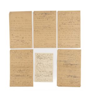 Manuscrit de premier jet, brouillon fragmentaire, avec ratures, ajouts, et nombreuses reprises avec une plume plus épaisse.