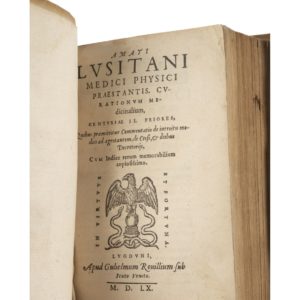 LUSITANO (Amato). — Curationum Medicinalium. — Lyon, Guillaume Rouille, 1560. — In-16, 693 pp., 18 ff. d'index, vélin de l'époque.