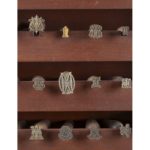 FERS À DORER. — Important lot de plus de 500 fers en plomb monogrammés à dorer et de reliure — De tailles variables allant de 5mm à 35mm, à la typographie classique et moderne.