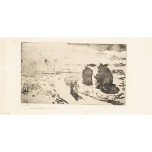 Camille PISSARRO (1830 - 1903) — Crépuscule avec meules — Eau-forte — Annotée "1er état, n°1", titrée — Epreuve avant de nouveaux travaux à l'aquatinte — Un peu jaunie, quelques taches
