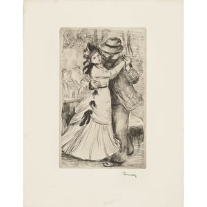 Pierre-Auguste RENOIR (1841-1919) — La danse à la campagne (deuxième planche), 1890 — Vernis mou sur vélin fort — Cachet de la signature en bas à droite — Légers plis ondulés, petites rousseurs et taches en marge