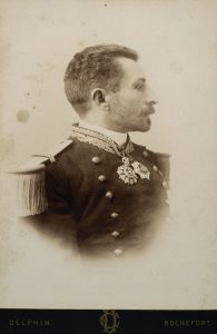 Édition originale, parue dans la Collection Guillaume et Lemerre et illustrée de nombreuses compositions in et hors texte d'après Myrbach. Un des 30 exemplaires de tête sur japon, paraphé par l'éditeur. Parfait exemplaire tel que paru. De la bibliothèque Léon Le Roy, avec ex-libris. On y joint un portrait photographique de l'auteur, de profil, en uniforme d'officier de marine ; cliché par Delphin à Rochefort, tirage albuminé format carte postale (146 x 100 mm), monté sur le carton original du studio. Rousseurs sur les bords du cliché.