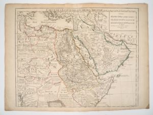 [ÉGYPTE]. DELISLE (Guillaume). CARTE DE L’ÉGYPTE DE LA NUBIE DE L’ABISSINIE c. Paris, Chez l’Auteur, nov. 1707. Un feuillet sur vergé (61,5 X 49 cm environ). Petites déchirures en marge supérieure. CARTE GRAVÉE DÉBUT XVIIIe DE LA PÉNISULE ARABIQUE AVEC REHAUTS D’AQUARELLE.