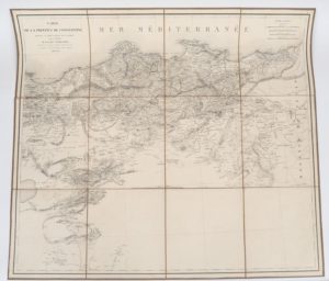 [ALGÉRIE]. PELET (Lieutenant général). ENSEMBLE DE 4 CARTES entoilées et pliées, regroupées dans une chemise à rabats sous étui carton à dos de basane décoré de 2 fers Rocaille dorés, titre doré (Étui de l’époque). - CARTE DE LA PROVINCE DE CONSTANTINE. Paris, 1844. (91 X 81 cm environ). - CARTE DE L’ALGÉRIE. Paris, 1846. (102 X 67 cm environ). - CARTE DE LA PROVINCE D’ORAN. Paris, 1846. (137 X 90 cm environ). - CARTE DE DE LA PROVINCE D’ALGER. Paris, 1846. (110 X 91 cm environ).