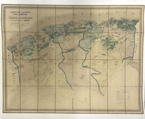 [ALGÉRIE]. VAILLANT (Maréchal). CARTE DE L’ALGÉRIE. TELL, KABYLIE ET SAHARA ALGÉRIEN. Carte entoilée et pliée (129,5 X 99 cm environ). Manques de toile aux plis. BELLE CARTE aquarellée réalisée en 1856 sous la direction du Général de Division DAUMAS.
