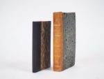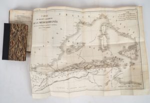 [ALGÉRIE]. APERÇU HISTORIQUE, STATISTIQUE ET TOPOGRAPHIQUE SUR L’ÉTAT D’ALGER, à l’usage de l’armée expéditionnaire d’Afrique, avec plans, vues et costumes ; publié par ordre de son Excellence le Ministre de la guerre. P., Picquet, 1830. In-12 ½ basane blonde glacée, dos lisse cloisonné et orné, titre doré (Reliure de l’époque) ; (2) ff. de faux-titre et titre, VII-216 pp., 14 pl. montées sur onglets, (11) ff. vierges. ÉDITION ORIGINALE. 5 CARTES et PLANS dépliants et 9 PLANCHES dépliantes lithographiées. Le nombre de planches varie selon les exemplaires. ¶ Tailliart, 35 – [ANONYME]. VOYAGE À ALGER, ou Description de cette ville et du royaume d'Alger, avec l’état de son commerce, de ses forces de terre et de mer ; son gouvernement et les mœurs et usages de ses habitans. Avignon, Chaillot Jeune, 1830. In-16 ½ chagrin noir moderne, dos lisse muet ; 142 pages. TROISIÈME ÉDITION augmentée d’un Vocabulaire Français-Algérien. SANS les vue, plan et carte annoncés. ENSEMBLE DE 2 OUVRAGES.