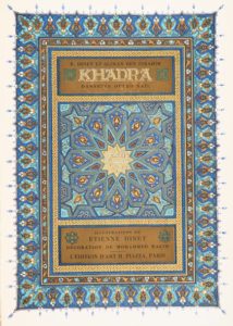 BEN IBRAHIM (S.). KHADRA, danseuse Ouled Naïl. P., Piazza, 1926. Petit in-4 broché sous étui carton décoré de l’éditeur. ÉDITION ILLUSTRÉE de 16 reproductions couleurs d’aquarelles d’Étienne DINET, dont 10 à pleine page et enluminures de Mohammed Racim. Tirage limité à 985 exemplaires. UN des 800 numérotés sur vélin.
