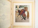 TOUSSAINT (Franz). LE JARDIN DES CARESSES. Paris, Piazza, 1921. In-8 carré broché. ÉDITION DE LUXE contenant 10 BELLES ILLUSTRATIONS h.-t. en couleurs et or, sous serpentes imprimées et légendées, du peintre et illustrateur Léon CARRÉ (1878-1942). Tirage limité à 700 EXEMPLAIRES numérotés sur JAPON, celui-ci sans suite, non justifié. Texte et illustrations agrémentés d'un encadrement de feuillage teinte or. ¶ Monod, 10754