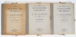 ESQUER (Gabriel). ICONOGRAPHIE HISTORIQUE DE L’ALGÉRIE depuis le XVIe siècle jusqu'à 1871. P., Plon, 1929. Trois volumes in-folio en ff. sous chemises demi-toile grège, plats cartonnés, rubans. ÉDITION ORIGINALE de cette importante somme iconographique. Texte explicatif, tables et 354 PLANCHES dont 1 double et 18 en couleurs.