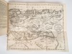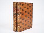 SHAW (A.). VOYAGES DE MONSr. SHAW, M. D. dans plusieurs provinces de la Barbarie et du Levant : contenant des observations géographiques, physiques, philologiques et melées sur les royaumes d’Alger et de Tunis, sur la Syrie, l’Égypte et l’Arabie Petrée. La Haye, J. Neaulme, 1743. Deux volumes in-4 veau fauve marbré, dos à nerfs orné, pièce de titre maroquin grenat, tranches rouges (Reliure de l’époque). Trace de choc à un coin. PREMIÈRE ÉDITION FRANÇAISE. 33 PLANCHES h.-t. gravées sur cuivre : 8 cartes (dont 7 dépliantes), 4 plans (dont 2 dépliants), 20 planches de botanique, vues, etc. (dont 4 dépliantes) et une planche dépliante de musique. De la bibliothèque « Scati-Grimaldi », avec ex-libris héraldique. ¶ Playfair, 247 – Hage-Chahine, 4501.