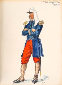 [UNIFORMOLOGIE]. BOISSELIER (H.). CAMPAGNE DU MEXIQUE (1862-1867). Petit in-folio (250 X 323 mm) broché, couverture de basane souple noire à bandes rouges, entièrement ornée de décor floral, étiquette papier au dos. [Vers 1950]. Ex-libris gravé « Sapin-Lignières » collé au 1er contreplat. RECUEIL DE 49 BELLES PLANCHES ORIGINALES à l’encre, aquarelle, rehauts de gouache et argent, numérotées, légendées et signées (le plus souvent du monogramme « H. B. ») par Henri BOISSELIER (1881-1959), dessinateur et illustrateur français spécialisé dans le domaine de l’uniformologie. In fine 6 ff. ronéotypés au recto seul, détaillant avec soin les 49 planches de costumes – COLLECTION BOISSELIER. In-12 carré veau bleu nuit, plats ornés d’encadrements doré et à froid, dos à nerfs orné avec la titre Collection Boisselier doré (Reliure d’époque). RECUEIL DE 15 PLANCHES ORIGINALES format carte postale à l’encre, aquarelle et rehauts de gouache, certaines légendées. Guerre de 1870-71 (6 pl.), spahis, tirailleurs sénégalais… ENSEMBLE DE 2 OUVRAGES.