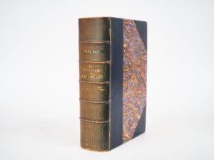 [MILITARIA]. ROY (J.). LA BATAILLE DE DIEN BIEN PHU. P., Julliard, 1963. Fort volume grand in-8 ½ chagrin à coins vert foncé, dos à nerfs, titre et tête dorés, couverture conservée (Reliure de l’époque). Dos passé et frotté, mors frottés. ÉDITION ORIGINALE. UN des 90 EXEMPLAIRES numérotés sur pur fil Lafuma, seul tirage en grand papier avec quelques exemplaires d’auteurs. Reliure défraichie mais corps d’ouvrage en parfait état.