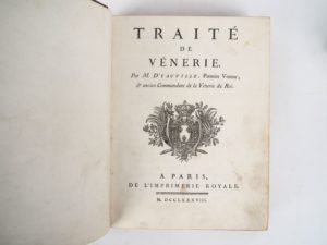 [CHASSE]. YAUVILLE (D’.). TRAITÉ DE VÉNERIE. P., Imprimerie Royale, 1788. In-4 basane fauve …