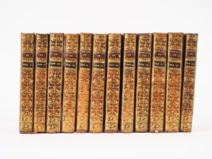 CORNEILLE (P.). THÉÂTRE avec des Commentaires et autres morceaux intéressans. S.l.n.e. [Frères Cramer, Genève], 1765. Douze volumes in-8 basane fauve marbrée, encadrement de triple filet doré sur les plats, dos lisse entièrement orné, pièces de titre et de tomaison maroquin grenat et noire, tranches marbrées (Reliure de l'époque). ÉDITION ILLUSTRÉE d’un FRONTISPICE par Pierre gravé par Watelet et de 34 FIGURES de GRAVELOT gravées par Baquoy, Flipart, Lemire, Lempereur, de Longueil, Prévost et Radigues. BEL EXEMPLAIRE en reliure d’époque, COMPLET des figures. ¶ Cohen, 255 : « Belle édition que Voltaire fit imprimer par souscription ».