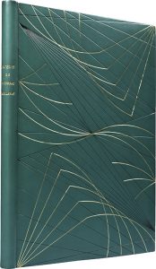 crème serties d'un filet doré, gardes de soie verte, couverture et dos, chemise et étui (H. Alix).