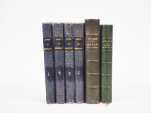 HOFFMANN (E. T. A.). CONTES FANTASTIQUES. P., Perrotin, 1840. Quatre volumes in-8 ½ basane noire, dos lisse cloisonné et orné à froid, titre et tomaison dorés (Reliure de l’époque). Rousseurs éparses. TRADUCTION NOUVELLE précédée d’une notice sur la vie et les ouvrages de l’auteur par Henry EGMONT. Vignettes gravées en noir dans un encadrement en bleu d’après les dessins de Camille ROGIER – PRÉVOST (Abbé). MANON LESCAUT. P., Perrotin, 1844. In-8 ½ maroquin vert lierre à coins, dos à nerfs, titre doré (Reliure de l’époque). ÉDITION ILLUSTRÉE d’eaux-fortes de Lalauze – VILLON (Fr). OEUVRES. P., Librairie des Bibliophiles, 1877. In-8 ½ maroquin vert lierre, dos à nerfs, titre doré (Reliure de l’époque). Dos un peu foncé, rousseurs. Préface et note par Paul Lacroix. ENSEMBLE DE 3 OUVRAGES.