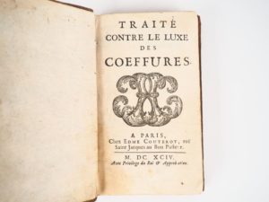 [VASSETZ (Abbé de)]. TRAITÉ CONTRE LE LUXE DES COEFFURES. Paris, Couterot, 1694. In-12 basane …