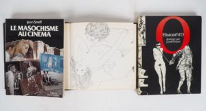 CREPAX (G.). HISTOIRE D’O. P., Livre-Essor, 1975. Grand in-4 reliure éditeur – STREFF (J.). LE MASOCHISME AU CINÉMA. P., Veyrier, 1978. In-4 broché – TAUZIN (M.). 30 DESSINS ÉROTIQUES DE TAUZIN. 1945. P., Soprodé, 1971. In-4 reliure éditeur. ENSEMBLE DE 3 OUVRAGES.