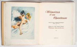 MÉMOIRES D’UNE CHANTEUSE. Traduction complète de Memoiren einer Saengerin (Altona 1862-1870) ou Mémoires de la célèbre cantatrice Allemande Wilhelmine Schroeder-Devrient. Aux trois cents Disciples d’Esculape, 1947. In-4 en ff., chemise et étui. ÉDITION HORS-COMMERCE ILLUSTRÉE d’un frontispice couleurs et de 14 PLANCHES h.-t. gravées en sépia signées Pol VEXIO [Bertommé Saint-André ?]. Tirage limité à 300 exemplaires numérotés sur vergé de Rives contenant une SUITE de 5/6 planches refusées. ¶ Dutel, 1950.