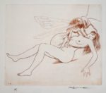 VIOLS. S.l.n.e., 1977. In-folio en ff. sous chemise toile avec titre en noir dans l’angle du 1er plat. RECUEIL DE 6 BURINS ORIGINAUX LIBRES par PRENLICE [André LEPRINCE] sur feuillets doubles. Tirage limité à 40 EXEMPLAIRES numérotés sur vélin de Rives, comportant une SUITE en sanguine, celui-ci UN des 6 EXEMPLAIRES lettrés de A à F (exemplaire F) contenant 4 ÉPREUVES D’ÉTAT supplémentaires et un CUIVRE. Le feuillet blanc qui précède le feuillet de titre est estampé à froid d’un phallus, les 6 burins originaux et ceux de la suite en sanguine sont tous justifiés F et signés à la mine de plomb par l’artiste.