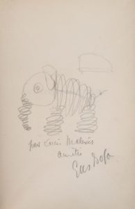 [BOFA]. BÉRAUD (H.). LE MARTYRE DE L’OBÈSE. P., Émile-Paul frères, 1925. In-8 broché. ÉDITION ORIGINALE ILLUSTRÉE de dessins en noir à fond orangé et de culs-de-lampe de Gus BOFA. Tirage limité à 850 exemplaires. Un des 778 numérotés sur Rives. Exemplaire enrichi d’un DESSIN ORIGINAL à la mine de plomb et d’un E.A.S. de Gus Bofa : « pour Louis Malexis / amitiés / Gus Bofa ». ¶ San Millan, 15.