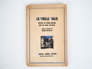 MARTAS (Pierre). LA VIEILLE VALSE. Avant-propos de Pierre Mac Orlan. P., Marcel Seheur, 1920. Grand in-8 broché. ÉDITION ORIGINALE ILLUSTRÉE de BOIS en noir (dont 8 coloriés) de Lucien BOUCHER. Tirage limité à 180 exemplaires. Un des 150 numérotés sur papier des manufactures Sorel-Moussel.