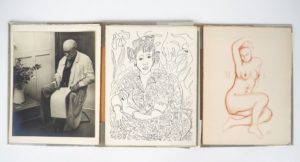 [REVUE]. HOMMAGE. I. Décembre 43 – II. Juin 44. Monaco, 1943-44. 2 vol. in-folio en ff. sous couverture rempliée. ÉDITION ORIGINALE de ces 2 numéros, seuls parus. Le 1er numéro contient les reproductions de : 1 dessin de BONNARD, 1 dessin à double page de DUFY, 2 nus de MAILLOL (dont 1 à double page), 2 dessins de MATISSE, 1 dessin à double page de PICASSO, un poème manuscrit en fac-similé de Pierre Emmanuel (7 pp.) illustré d’un dessin en 2 tons par Léon ZACK. Le 2nd numéro contient les reproductions de : 3 poèmes manuscrits en fac-similé de Paul Éluard (4 pp.) et un dessin de Léonor FINI, une PHOTOGRAPHIE originale de MATISSE par BRASSAÏ, un texte d’André ROUVEYRE intitulé Portrait de Matisse (4 pages), 12 planches de dessins de MATISSE (dont 2 calques) et le fac-similé de la liste manuscrite de l’artiste. Tirage limité à 1030 et 1050 exemplaires. Une partie du tirage aurait été détruit.