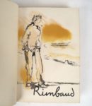 RIMBAUD (A.). ŒUVRES COMPLÈTES. P., La Bonne Compagnie, 1945. In-8 maroquin brun foncé, 1er plat orné d’une plaque émaillée représentant A. Rimbaud, dos à nerf central, titre doré, coupes et coiffes ornées d’une chainette dorée, tête dorée, couverture conservée, étui bordé (Andréas). ÉDITION ILLUSTRÉE en couleurs par Christian BÉRARD (1er plat de la couverture et frontispice). Tirage limité à 1050 exemplaires. UN des 900 numérotés sur vélin de Rives.