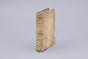 roulette d'encadrement avec médaillons de personnages antiques. Reliure alémanique du temps. (Travail de rongeur sur les coupes, relativement bénin. Corps d'ouvrage tendant à se déboîter). Adriaan van Baerland, philosophe et linguiste, occupe la chaire de latin au Collège des Trois Langues de Louvain, dès son ouverture en 1518. Proche d'Erasme, il écrit ce rare abrégé des Adages d'Erasme pour en faciliter l'étude, publié chez le typographe humaniste et protestant Thomas Wolff, dont la très belle marque de libraire avec sa devise en trois langues (latin, grec et hébreu) figure sur le dernier feuillet. "Il a dit qu'il se repentait de n'avoir jamais gardé le silence". Quelques notes marginales du temps en latin et en flamand attribuant certains adages à Philostrate, Hésiode, Homère, Pindare etc... Note sur le contre-plat : "Dono accepi a Michaele Hoffmanno anno 1562" (Ce livre m'a été offert par M. Hoffmann en 1562)