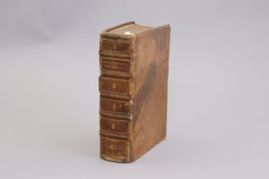collèges et autres choses remarquables, divisé en quatre livres. Par le R.P.F. Du Breul, Parisien, Religieux de Saint Germain des Prez. Paris, Claude de la Tour, au Mont Saint Hilaire. 1612 4 parties en 1 fort volume petit in-4°, (8 ff), 1310 pages, (9 ff) pour le Privilège et la Table. Plein veau fauve, double filet d'encadrement sur les plats, dos à 5 nerfs. (Mors fendus, coins frottés ; page de titre froissée ; tache claire sur les 100 dernières pages).. Edition originale. Jacques du Breul (1528-1614) était prieur claustral de Saint-Germain des Près. Son Théâtre des Antiquités est un des ouvrages de base sur l'histoire ancienne de Paris. C'est dans cet ouvrage queVictor Hugo a puisé une partie de ses renseignements pour « Notre Dame de Paris ». Exemplaire portant l'ex-libris gravé de l'historien de Paris Héron de Villefosse, et l'ex-libris manuscrit Courbeville, daté 1760. Vignette gravée sur le titre, 5 gravures sur cuivre in texte et 4 aux 3/4 de page, par Thomas de Leu, Léonard Gautier, etc... Une gravure hors-texte, qui devrait être placée entre les pages 125 et 126, manque.