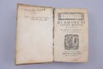 LEON L'HEBREU. Juda ABRAVANEL, dit (vers 1460-1520). Dialoghi di Amore di Leone Hebreo, di nuovo corretti et ristampati. . Venise, Nicolo Bevilacqua. 1572 Petit in-8, 246 feuillets. Vélin XVIIème à petits recouvrements. (Titre doublé ; quelques...
