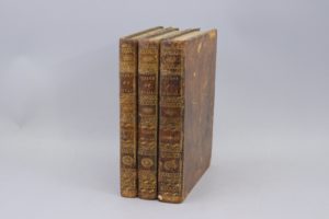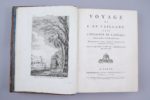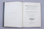 huit n'avoient pas encore paru. Second voyage dans l'intérieur de l'Afrique par le Cap de Bonne Espérance dans les années 1783, 84 et 85, par F. Levaillant [sic] A Paris, chez Jansen et Compagnie, Imprimeurs-libraires, place du Museum. L'an IV de la République (1796).. 3 volumes in-4°. 455 pages, 20 planches hors-texte dont le frontispice. (2 ff), iv et xvi pp, 240 pages et 7 planches hors-texte. (2 ff), 373 pages et 15 planches hors-texte. Pleine basane du temps, Dos sans nerf très orné. (Dos un peu ternis. Quelques coins écrasés ou émoussés.). Réédition du premier Voyage publié pour la première fois 5 ans plus tôt. Edition originale du Second Voyage, publié simultanément en formats in-8 et in-4°. Assez bon exemplaire de ce récit de voyage passionnant, qui connut de nombreuses éditions. Le Vaillant, aventurier, ethnologue, ornithologue (et fournisseur d'oiseaux exotiques divers pour les cabinets de curiosité), est un des personnages les plus romanesques de cette époque qui n’en manquait pas..