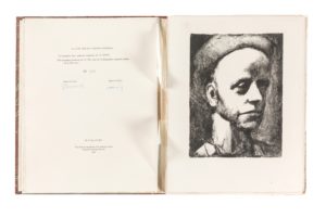 350 exemplaires, tous signés par l'artiste, tous sur vélin d'Arches, celui-ci n°247, ornés de 6 lithographies originales de Rouault : autoportrait de Rouault en frontispice, portraits d'André Suarès (avec taches d'humidité), Gustave Moreau (2), Léon Bloy et J. K. Huysmans. (François Chapon : Rouault, Oeuvre gravé, n°s 310-315. Monod, 9970).