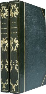 [STENDHAL]. Histoire de la peinture en Italie. Par M. B. A. A. Paris, P. Didot l'aîné, 1817. 2 volumes in-8, demi-maroquin vert foncé avec coins et mors sertis d'un filet doré, plats de percaline verte, dos lisse orné en long de motifs rocaille...