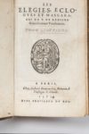 RONSARD, Pierre de (1524-1585). Les Elégies, Eclogues et Mascarades de Pierre de Ronsard, Gentilhomme Vendômois. Tome quatrième.. Paris, Gabriel Buon. 1573 2 parties en 1 volume in-16, 514 pages numérotées par erreur 516, (4 ff) pour la table et...