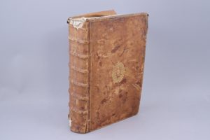 1609. (A la suite :) Les controverses et suasoire de M. Annaeus Seneca rhéteur. De la traduction de M. Mathieu de Chalvet. A Paris, chez Abel L'Angelier, 1610.. Paris, Abel Langelier. 1609 2 ouvrages en 1 fort in-folio. (8 ff), 523 feuillets, (15 ff). (4ff), 318 ff, (2ff). Plein veau fauve ; encadrement d'un filet doré, couronne d'olivier au centre des plats. Reliure du temps. (Pliures sur les premiers feuillets. Coiffes arrachées. Coins usés. Carton du second plat très endommagé).. Belle édition des traductions de Mathieu Chalvet (1528-1607), sur un papier très blanc, à belles marges.. Titre avec encadrement dessiné et gravé par Thomas de Leu ; portrait de Chalvet gravé par de Mallery d'après Du Monstier. (Balsamo et Simonin, Abel L'Angelier; n°s 490 et 506)