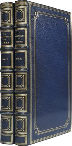 dorée, dos orné de même, coiffes guillochées, filets sur les coupes, tranches dorées sur témoins, dentelle intérieure dorée, couverture, étui commun bordé (Cuzin).