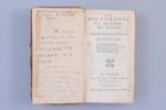 gentilhomme de la Franche-Comté Bourguignote. (A la suite, avec titre séparé :) Les Escraignes Dijonnoises, recueillies par le Sieur des Accords.. Paris, Claude Montr'oeil et Iean Richer. 1595 4 parties en 1 volume in-12, (5 ff), 182 ff ; (4 ff) et 50 ff ; 43 ff (1f) ; 60 ff. Veau marbré du XVIIIème siècle, tranches dorées. (Reliure très endommagée. Le corps d'ouvrage est séparé en deux).. Possible première tentative d'édition de l'oeuvre complète de Tabourot des Accords. Elle se compose des 3 parties avec titres séparés publiées en 1595 chez Claude Montr'oeil et Jean Richer, et des Apophtegmes (signés AC12-D8), probable remise en vente sans le titre d'une édition antérieure (1585?) invendue. Viollet le Duc (Bibliothèque poétique, vol. II : Traités singuliers, pp. 163-164) ne possède que l'édition de 1662, qu'il juge évidemment la meilleure. Une vingtaine de xylographies in-texte, dont des portraits et des symboles astrologiques, ainsi que des partitions musicales, elles aussi gravées sur bois. Tabourot, poète facétieux et excentrique, s'intéresse à tous les jeux d'esprit , des rebus aux équivoques, des contrepèteries aux anagrammes (encore logiquement masculines en son temps), des "sortes de vers folastrement et ingénieusement pratiquez" aux vers rétrogrades ou léonins -tout en pratiquant les plaisanteries grivoises ou scatologiques.