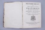 THIARD de BISSY, Henri de (1657-1737). Mandement et instruction pastorale de Mgr l'Evêque de Meaux sur le Jansénisme, portant condamnation des Institutions Théologiques du Père Juenin.. Paris, J.B. Christophe Ballard. 1710 In-4°, 614 et 12...
