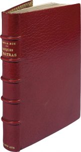 Éditions originales des trois volets de la trilogie Jacques Vingtras. I. Jacques Vingtras. 1879. In-12, maroquin rouge janséniste, dentelle intérieure, tranches dorées, non rogné, couverture et dos, étui (Aussourd). Rare édition originale de L'Enfant — titre sous lequel paraîtront ses réimpressions — publiée par Vallès sous le pseudonyme de Jean La Rue. De la bibliothèque Jules Le Roy, avec ex-libris. Petits trous comblés aux dernières pages et au plat inférieur de la couverture conservée. II. Le Bachelier. 1881. In-12, bradel demi-maroquin framboise, non rogné, couverture et dos (Champs). Édition originale. Envoi autographe signé de Vallès au critique d'art Jules Castagnary (1830-1888), proche de Gustave Courbet. III. L'Insurgé. 1886. In-12, demi-maroquin rouge avec coins, tête dorée, non rogné, couverture (Bernasconi). Édition originale, publiée après la mort de Vallès par Séverine, avec un portrait gravé sur bois par E. Clair Guyot. Rare et bel ensemble.